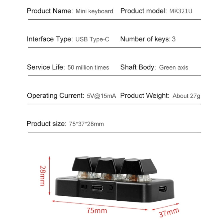 MK321BT Bluetooth 5.1 3 Keys Custom Keys Game Office PS Clip Macro Programming Keypad(White)