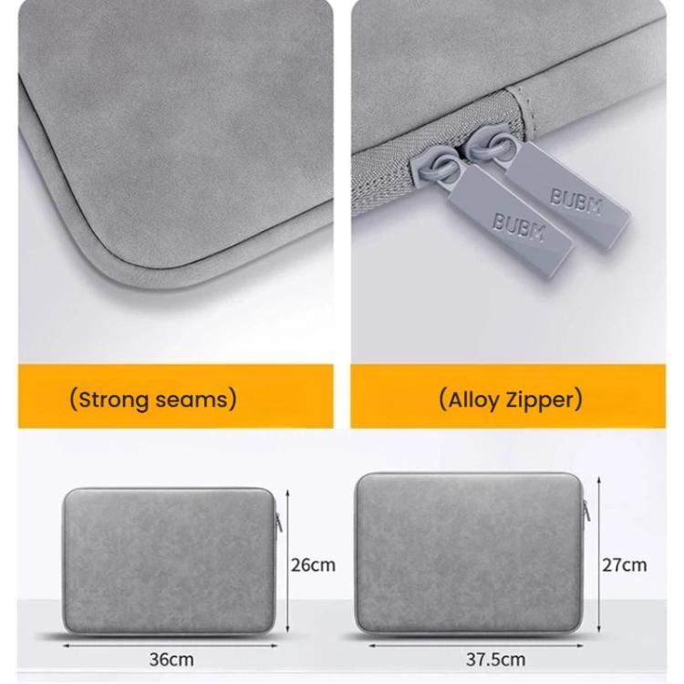 BUBM 14 Inch PU Suede Laptop Sleeve Case Business Notebook & Tablet Protective Inner Bag with Soft Lining(Light Gray)