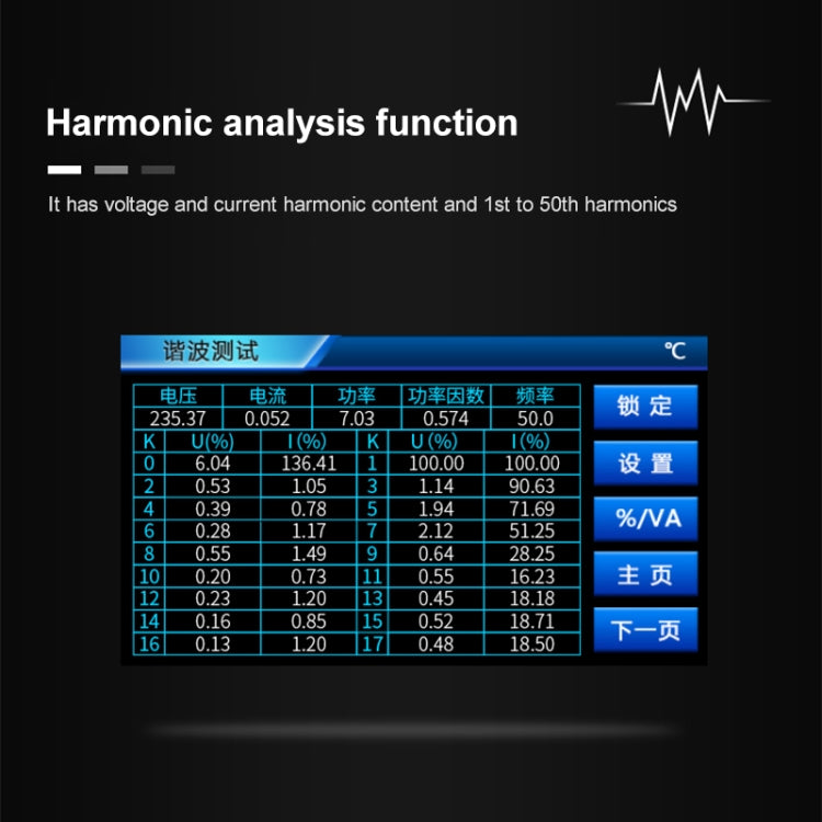 10. Harmonic analysis function: Can display total harmonics and 2~50th harmonic components
