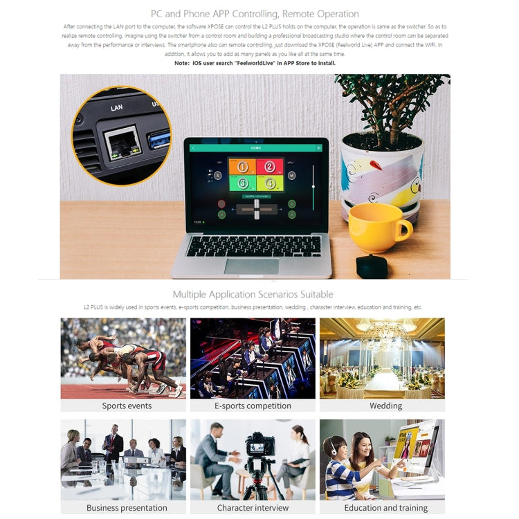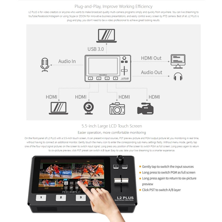 3. Real-time 6-picture preview ( 4 inputs sources + PST preview + PGM output picture)