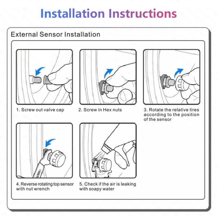 4. Using wireless transmission technology, the sensor will give an immediate warning when it detects abnormal tire temperature or pressure.