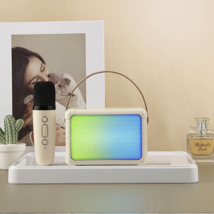 Portable RGB Lighting Effect Bluetooth Speaker Home Mini Karaoke Audio, Style: Single Microphone+Speaker(Beige)