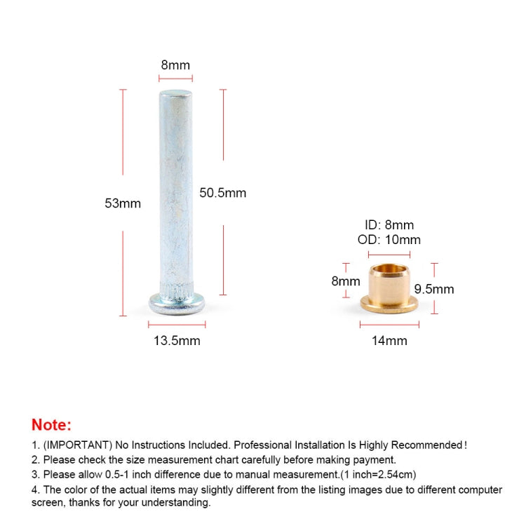 1. The door hinge pin and bushing kit is made of metal material, which is strong and durable, rust-proof and corrosion-proof, easy to use and firmly fixed.