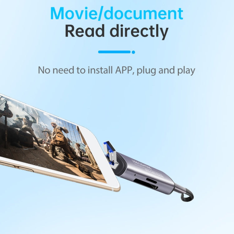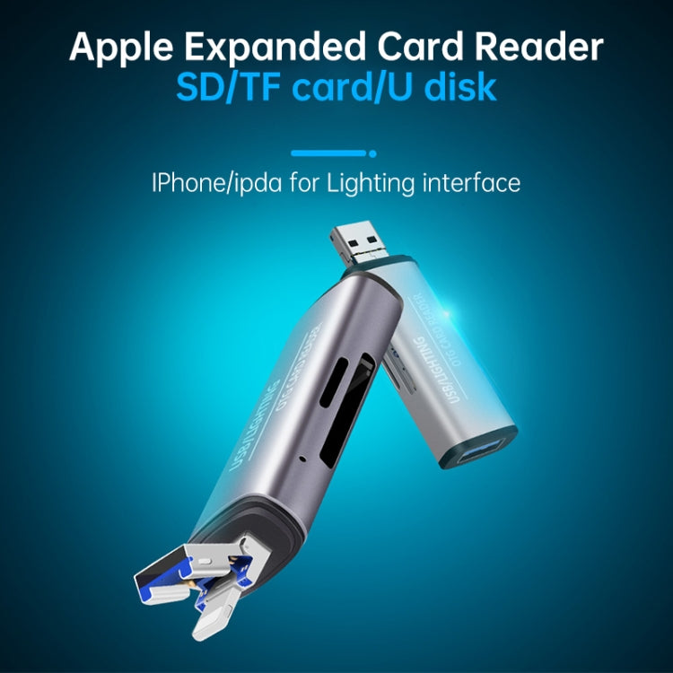 118 2 in 1 USB + 8 Pin Interfaces USB Flash Disk / Memory Card OTG Card Reader for IOS System Mobile Phone / Computer (Light Grey)