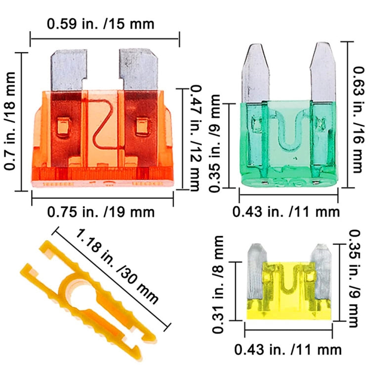 1. Contains 14 common fuses: standard and mini.