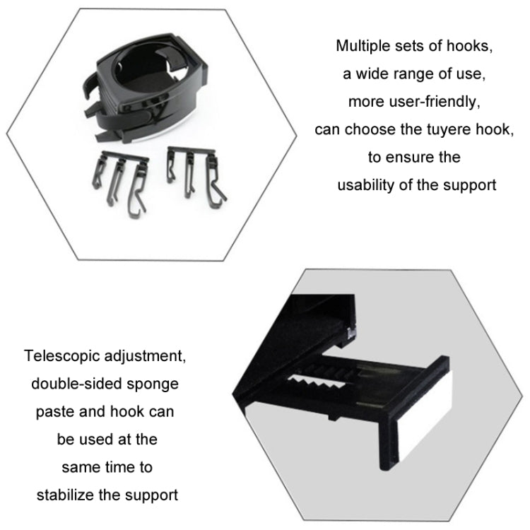 2. Car cup and mobile phone holder integrated, mobile phone (width 53mm to 85mm, thickness no more than 15mm), beverage bottles and beverage cans (container less than 500ML, diameter no more than 70mm)