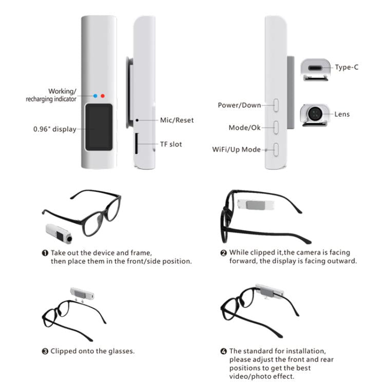 HD 2.7K FPV Eyeglasses Camera 0.96 inch IPS Color Screen Convenient Shooting