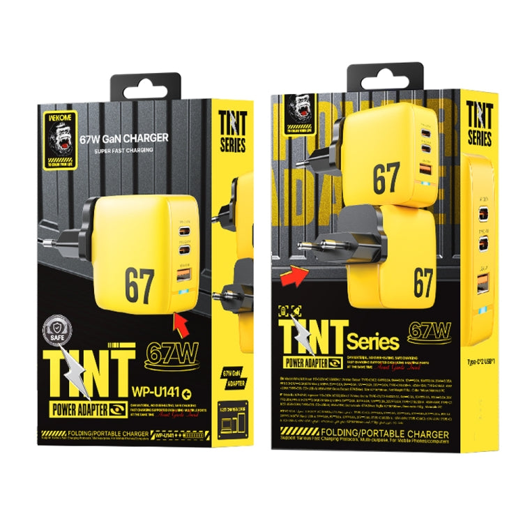 WK WP-U141 67W USB+Double USB-C / Type-C GaN Charger, Plug:EU Plug(Yellow)