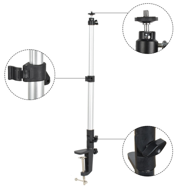 Aluminum Tube Cell Phone Live Streaming Telescopic Pole Desktop C-Clip Cell Phone Overhead Photo Holder, Size: Bracket+Phone Clip(Silver Gray)